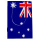 Diseño con bandera de la Commonwealth de Australia, diseño azul desfigurado, con la bandera de la Unión y una gran estrella blanca de siete puntas (Estrella de la Commonwealth) en el barrio inferior de la torre y cinco estrellas blancas (que representan la constelación de la Cruz del Sur) en la mosca