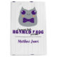 ¿Conoce a un bebé en camino? ¿Destinadas a ser una rana? Este lindo diseño se hace en morado con una adorable rana de cuerno de bebé - completa con bowtie. Una rana grande en el frente con un lugar para su nombre con un patrón repetido de la rana en la parte posterior.