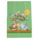 Bolsa de Regalo de Bebés Dulce. El león, el mono, la jirafa y el elefante componen los animales del bebé dulce, con un pequeño pájaro canto y una bolsa de regalo feliz del sol brillante. Ideal para los cumpleaños de los pequeños, los nuevos regalos de alegría y los artículos de Baby Shower.
