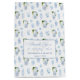 El fondo de este diseño de bolsitas de regalo son jarrones de jengibre acuarela (uno de los cuales está lleno de flores azules y blancas / hojas verdes) dispuestos en un patrón de repetición. El texto que se muestra es para un boda de bienvenida o bolso de agradecimiento, pero todos los campos de texto son personalizable a sus necesidades.