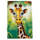 La jirafa personalizado, con vibrantes plantas de selva, árboles y flores para el cumpleaños.