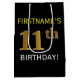 Bolsa De Regalo Mediana Black, Faux Gold 11th Birthday + Custom Name