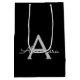 Bolsa De Regalo Mediana Black Silver Modern Script Girly Monograma Nombre