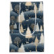 A lush winter pattern featuring deep blue fields topped with falling snow, cream deer silhouettes, and hearty cream winter pine trees dotting the landscape.