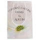 Flor de cosmos blanco sobre fondo de agua abstracta rosa rubia para regalo boda. El texto es editable.