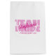 El diseño de la bolsa de regalo de la dama de honor de la personalizado para su dama de honor presenta "TEAM BRIDE" en negrita de color rosa claro. Nombre de la dama de honor personalizar en escritura rosa oscuro. El fondo es blanco crujiente. El diseño se repite en la parte posterior. A continuación se muestra el título o el texto del personalizado. Todos los colores de este diseño son personalizable en el área de la herramienta de diseño Zazzle! Mensaje con preguntas o solicitudes de color personalizado.