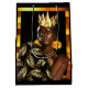 Esta sorprendente pieza de arte celebra el legado afroamericano y diásporo. La Bolsa de Regalos presenta una imagen atrevida y hermosa de una mujer negra adornada con exquisitas joyas de oro y una corona de reyes, ambientada con un rico fondo negro. Los detalles intrincados y los colores vibrantes hacen de esta bolsa de regalo una verdadera obra maestra, perfecta para cualquier ocasión especial. Su diseño no sólo añade un toque de elegancia, sino que también honra el rico patrimonio cultural y la belleza de la diáspora africana.