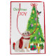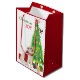 Bolsa De Regalo Mediana Bulldog blanco, pájaro y árbol de Navidad
