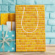 Esta encantadora bolsa de regalo cuenta con un encantador diseño de ladrillo amarillo que rinde homenaje a la amada carretera de ladrillo amarillo del Mago de Oz. Los ladrillos ilustrados a mano se deslizan juguetamente por toda la superficie, creando una sensación de movimiento y capricho. El diseño, decorado en tonos cálidos, dorados y amarillos, con un suave matiz y una textura sutil, se inspira en un libro de cuentos clásico. El aspecto se completa con unas mangas de cinta blancas y una opción de papel de tejido amarillo a juego, por lo que esta bolsa es ideal para celebraciones temáticas, cumpleaños o regalos destinados a inspirar una pequeña aventura.