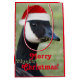 Bolsa de regalo de Navidades de tamaño mediano con guarnecido rojo que muestra la caprichosa foto de una gansa canadiense con un sombrero de Santa roja y collar de bayas holly. Seleccione su estilo de bolso de regalo. ¡Un diseño divertido y animal para las vacaciones!
