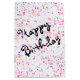 Los dulces de cumpleaños coloridos rompen sobre el fondo blanco con el texto Feliz Cumpleaños. Se puede cambiar el color de fondo. El texto es editable.