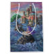 Si amas a las sirenas, entonces esta pintura es para ti. El Castillo de la Sirenita pintado por Traci Van Wagoner presenta una sirena con el pelo púrpura delante y una sirena con el pelo verde que se solea en las islas rocosas, mientras que otra sirena con el pelo rosado nada en el océano frente a un castillo con un cielo morado, naranja y amarillo atardecer detrás. Este hermoso y caprichoso arte de fantasía hace un gran regalo y una impresionante decoración para tu oficina o casa.