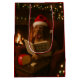 Individually designed Christmas gift bag featuring a gorgeous Wire Haired Vizsla reading a book entitled 'Cheese Tax at Home Regulations 2025'.