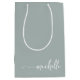 Bolsa De Regalo Mediana Chic Verde Sage Monograma Nombre Script