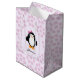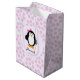 Bolsa De Regalo Mediana Chica de bonito Pingüino con fondo de mareo rosa
