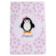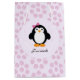 Personalice este pingüino chica con una bolsa de regalo de fondo rosada con un nombre o texto de su elección.