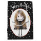 Chica de la figura de palo con pelo rubio, zapatillas de deporte, vestimenta de puntos de polka y ramo de margarita sobre el patrón de puntos de polka blanco y negro. El texto es editable.