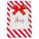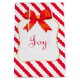 Hermosa cinta roja y fondo de rayas blancas rojas bolsa de regalo. El texto de alegría se puede personalizar.