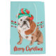 Bolsa De Regalo Mediana Colas de cuerdas navideñas de bulldog Santa Hat