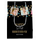 Crea un elegante bolso de regalo de collage de fotos con ocho fotos favoritas! Personalice la plantilla con el nombre del destinatario y la edad de cumpleaños. Un diseño elegante con confeti, estrellas y fotografías en forma cuadrada, perfecto para la familia y los amigos. Colores impresos: azul-verde verde azulado, negro, blanco y elementos falsos de oro.