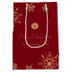 Bolsa De Regalo Mediana Copos de Nieve Dorados Rojos Logo Personalizado de
