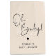 Hermosa y linda bolsa de regalo para bebés, minimalista, neutra en género, con un divertido y moderno tipo de letra de guión y un diseño simple. Personalizable completo con tu nombre en la parte delantera y Mensaje de agradecimiento en la parte trasera, por tu ducha de bebé.