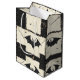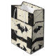 Bolsa de regalo de halloween con bates cocidos en vuelo. La textura estridente y estridente con puntos fuertes crea una estética gótica rústica. Ideal para los amantes de los murciélagos, decoración gótica o regalos únicos de Halloween.