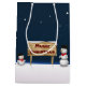 Ilustracion gráfico de invierno con dos lindos hombres de nieve sosteniendo un cartel de madera con Navidades saludando en un ambiente nevado.