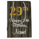 Este elegante, lujoso y elegante diseño de bolsos de regalo con temática de cumpleaños cuenta con un gran número ordinal "29th" con un aspecto imitación/faux de inspiración dorada, además del mensaje de bienvenida de cumpleaños "Feliz cumpleaños 29th", y un nombre de destinatario personalizado con un tipo de letra estilo script. El fondo tiene un diseño de imitación de madera. Una sofisticada bolsa de regalo con temas de cumpleaños como esta puede ser usada cuando se da un regalo o regalo para la celebración de los 29 años de alguien. [~Z0000520]