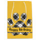Bolsa De Regalo Mediana Cumpleaños Tartan Plaid Paw Print on Gold
