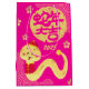 Este elegante diseño de Año Nuevo presenta una linda serpiente dorada en una letra china "Todo lo mejor en el año de las serpientes" con un patrón de círculo y flores en un fondo rosado.