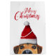 Ilustracion de animales de la Feliz Navidad: Perro curioso con sombrero de Santa. Saludo estacional escrito en letras de tipografía moderna.