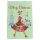 Navidades como se veía en los años 50 con esta obra de arte retro de una mujer vestida con un vestido de falda completa y rojo.