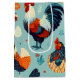 Diseño de patrones impecables para gallinas y gallos. Animales de granja; Diseño gráfico de gallos y gallinas. Blanco, azul, rojo y naranja.