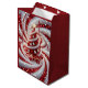 Make your Christmas gifts unforgettable with this Elegant Swirl Christmas Tree Gift Bag, featuring a stunning red and white spiral tree design surrounded by sparkling lights and festive details.