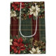 Bolsa De Regalo Mediana Elegante Clásico Rojo Pintado Poinsettias Holly &