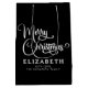 Haz que tus regalos de vacaciones sean aún más especiales con nuestro Elegante guión personalizado Personalizado navideño mediano bolso de regalo en blanco y negro atemporal. Esta bolsa clásica de Navidades, personalizada con el nombre de su familia, le aporta un toque elegante y sofisticado a sus regalos, lo que crea el escenario para un intercambio de vacaciones memorable. El texto de la escritura Feliz Navidad en la bolsa captura perfectamente el espíritu festivo y la elegancia de la temporada, lo que lo convierte en una adición destacada a tus suministros de envoltura de Feliz Navidad. Personalice esta bolsa con su apellido o un mensaje sincero, creando una presentación única que transmite calidez y alegría. Ya sea que usted esté buscando una bolsa de regalo minimalista moderna o un aspecto más tradicional, nuestro diseño es versátil y adecuado para cualquier regalo. Con esta bolsa, tu temporada de vacaciones se vuelve verdaderamente inolvidable, dejando una impresión duradera en tus seres queridos. Es la elección perfecta para añadir un toque de elegancia eterna a tus regalos.