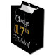 Este elegante, lujoso y elegante diseño de bolsos de regalo con temática de cumpleaños incluye el número ordinal "17", que tiene un gran gradiente de imitación o imitación de color dorado, además de un mensaje de bienvenida de cumpleaños y un nombre de destinatario personalizado en un tipo de letra estilo script. También tiene un fondo de color negro. Una bolsa de regalo con tema de cumpleaños como esta puede ser una manera divertida de envolver un regalo o regalo que se le da a alguien que está celebrando su cumpleaños número 17. [~Z0000513]