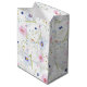 Esta bolsa de regalo mediana perfecta para ella tiene un elegante patrón floral de flores azul pastel y rosa contra un fondo blanco. Puede usarse para todas las ocasiones y vacaciones, incluyendo cumpleaños, Día de la Madre y duchas de novias.