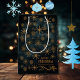 Bolsa de regalo personalizada Merry Christmas preciosa en un fondo AZUL TEAL con un patrón elegante con flores y estrellas pequeñas. Puede actualizar todo el texto, cambiar el nombre de la familia o utilizar el nombre de una pareja o el nombre de una empresa. También sería una excelente bolsa de regalo para empresas.