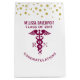 Enfermeras felicitaciones clase de la bolsa de regalo de 2019 con puntos falsos de confeti de oro a lo largo de la parte superior. Un símbolo caduceus rojo con las letras R N en cada lado.