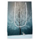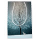 El diseño presenta una imagen de un árbol de invierno en la nieve.