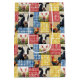 A colorful patchwork quilt design featuring gingham fabric and farm animals
