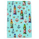 Este colorido diseño presenta un patrón de Navidades náuticos de faros con coronas y campanas, anclas decoradas, boyas festivas, entremezcladas con estrellas de mar y conchas.