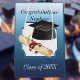 Felicitaciones a un sobrino tras su graduación. El frente tiene un mortarboard y diploma con Felicitaciones y el año de clase.