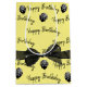 Feliz texto de cumpleaños con un arco de oveja negra y globos de polika blanco y negro sobre fondo amarillo. El texto se puede editar. Se puede cambiar el color de fondo.