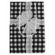 Arco blanco con etiqueta de regalo sobre el patrón de gingham en blanco y negro y texto Feliz Cumpleaños.