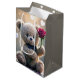 Bolsa De Regalo Mediana Feliz cumpleaños Teddy Bear con rosa rojo