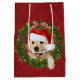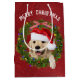 Bolsa De Regalo Mediana Feliz Navidad Golden Retriever en wreath
