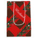Bolso de regalo mediano con monograma (personalizado) - ¡Feliz Navidad y próspero año nuevo! Bolso de regalo mediano XMAS decorado con símbolos mágicos de Navidad, elementos de regalos de fiestas de invierno, muñeco de nieve, árbol de Navidad, bola de Navidad, reno, copos de nieve, estrellas de Navidad y más personajes festivos. Corona de bayas de Navidad con ramitas rústicas, decoración de guirnalda, en adornos cuadrados de cuadros de Navidad, patrón de Escocia (color verde y rojo). Diseño gráfico original y de moda. Artículos y suministros para fiestas > Suministros para envolver regalos > Bolsas de regalos. Decoración de fiestas de invierno. Diseño de bolsa de regalo mediano con monograma con plantilla de texto. Personalízalos agregando tu nombre. Decoración gráfica en ambos lados. 2024